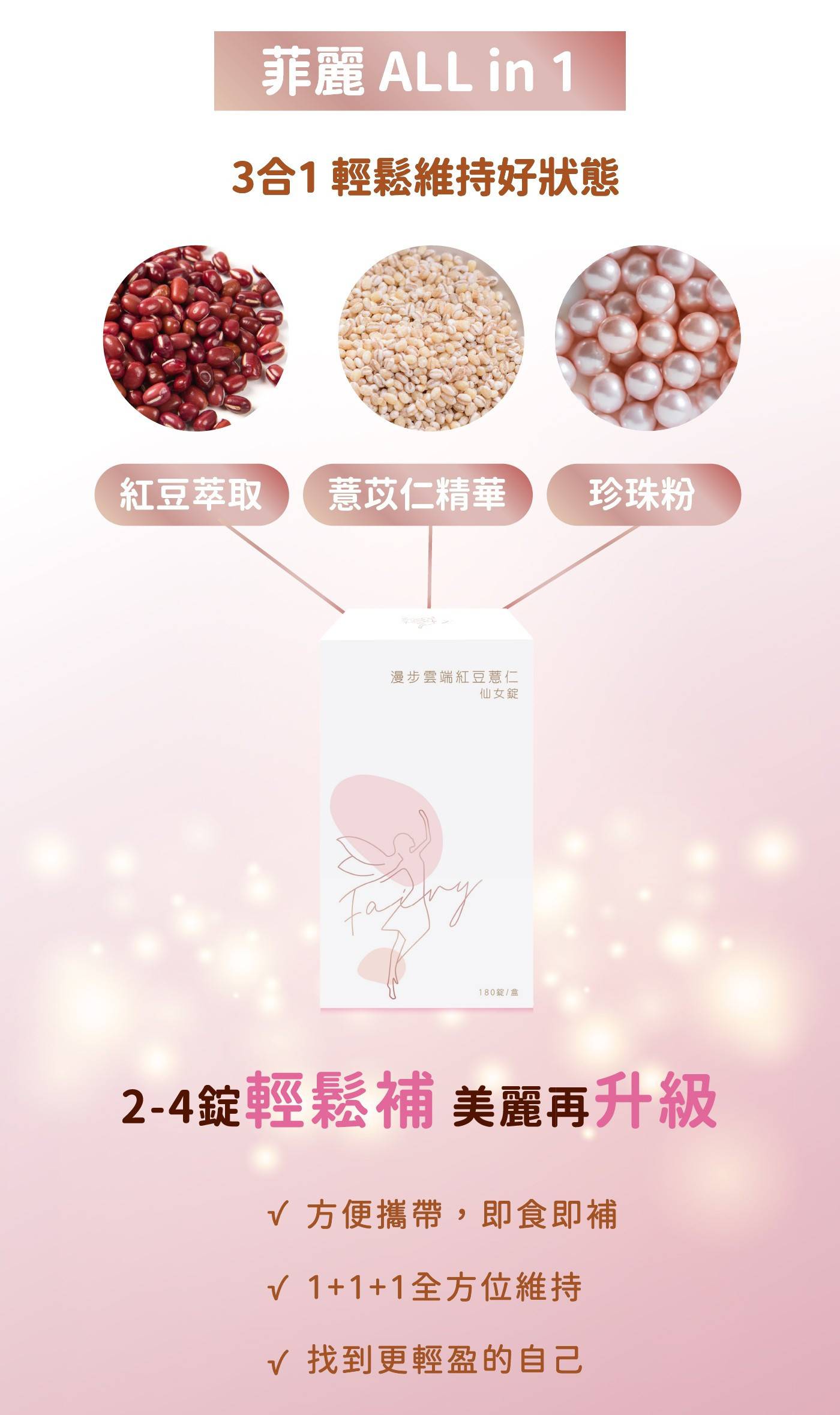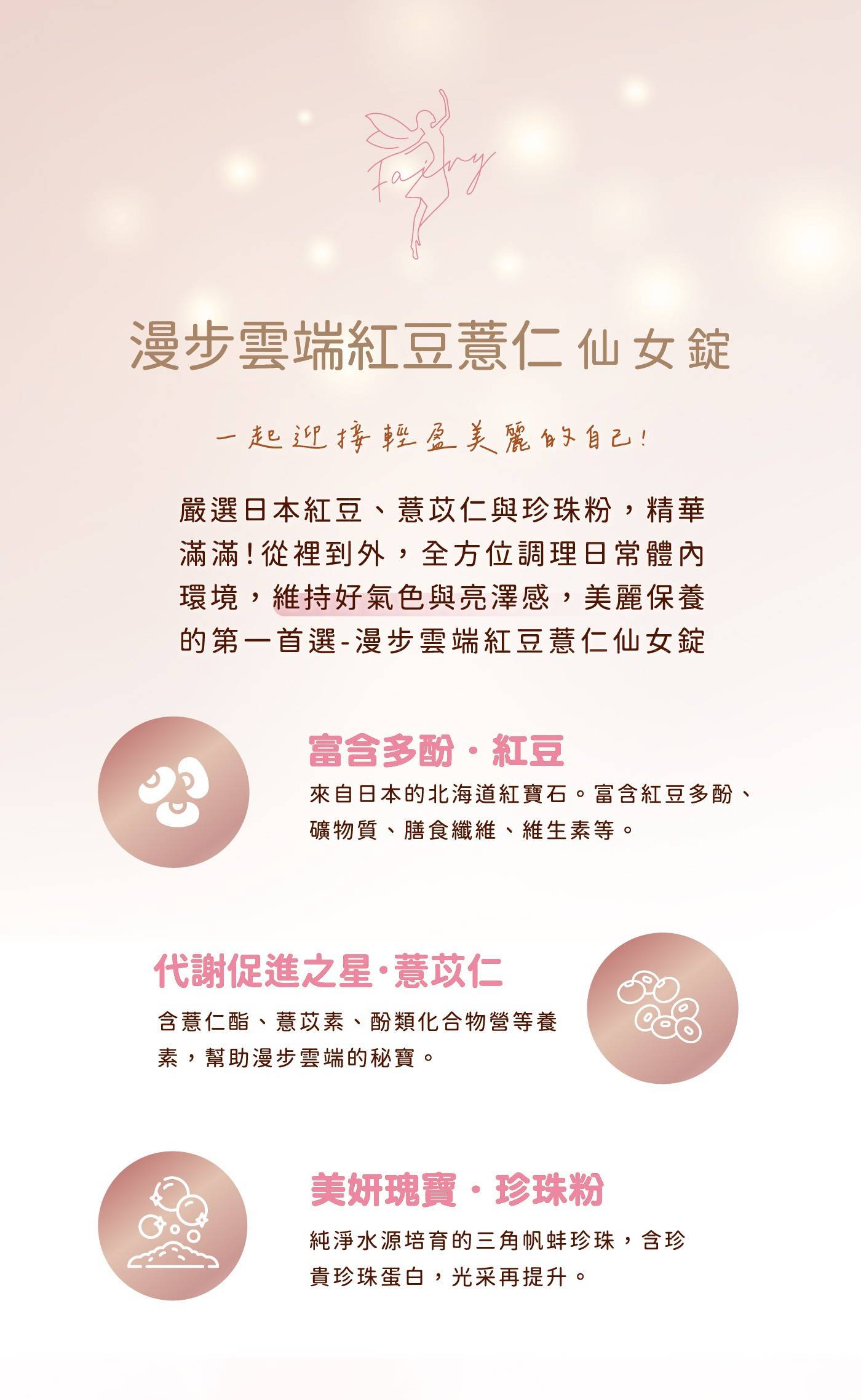 【漫步雲端紅豆薏仁仙女錠】4盒優惠組 · 92折,菲麗 Fairy